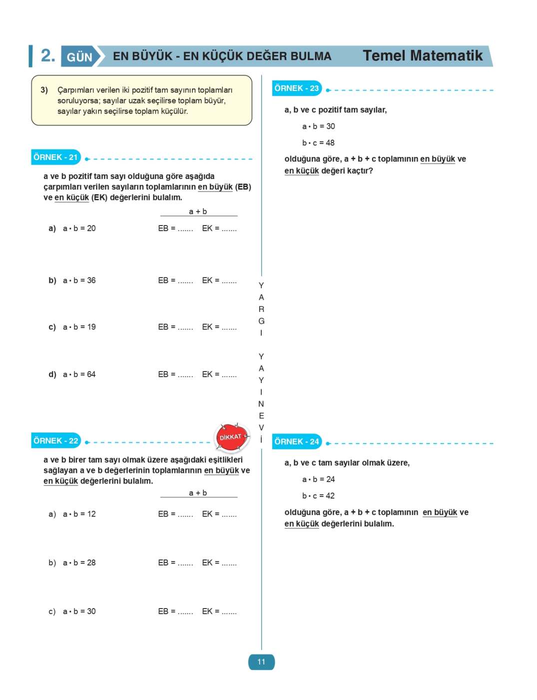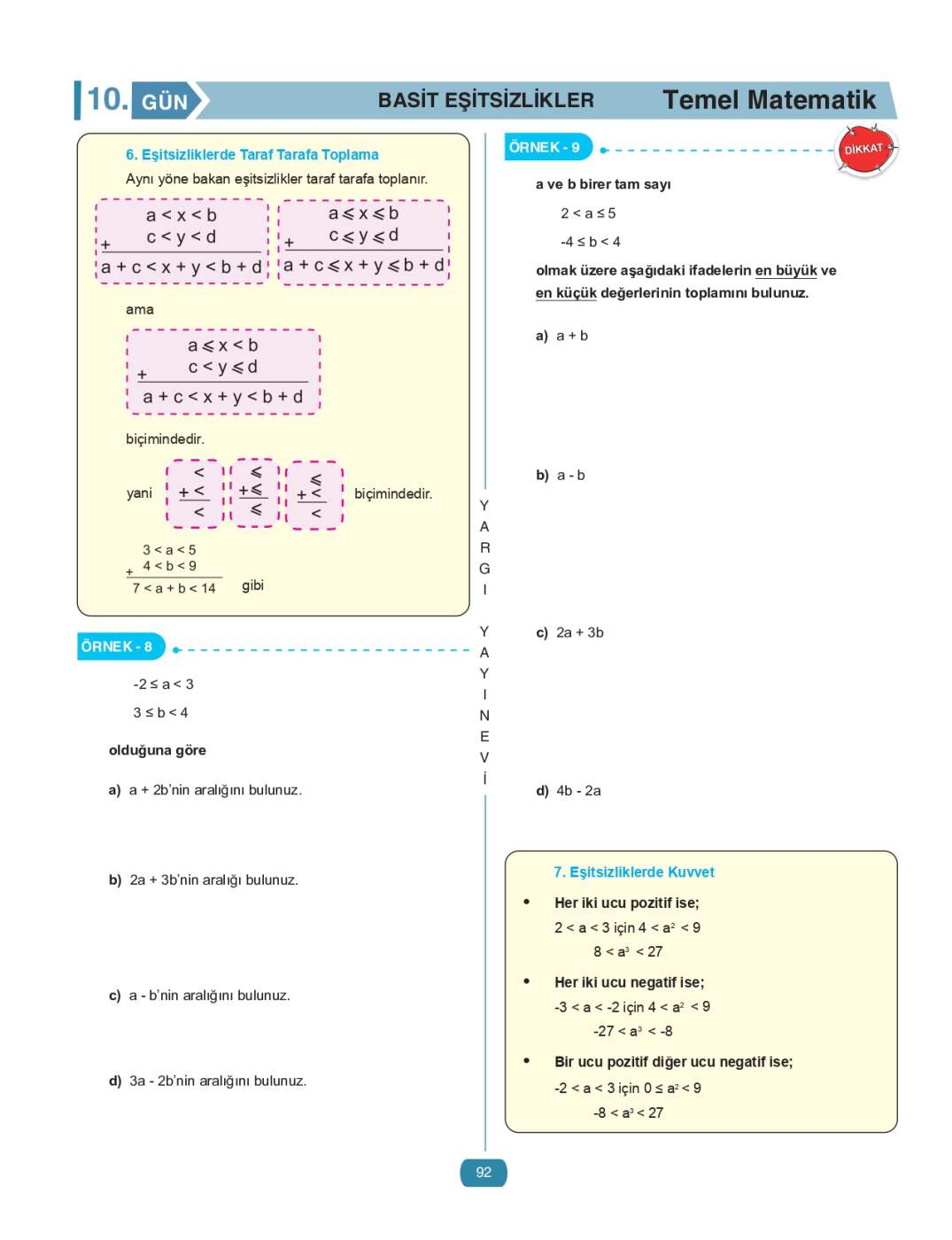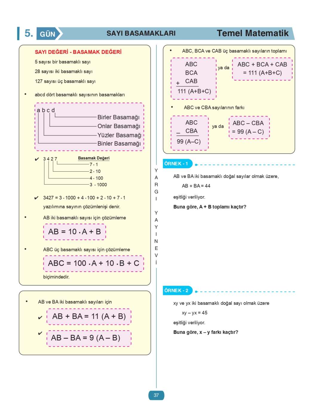 Problemler haricinde neredeyse her konu, en basit seviyeden başlayarak mantığıyla birlikte anlatılır ve hemen ardından konuyu pekiştiren özgün sorularla desteklenir. Bu sayede okuyucu yalnızca soru çözmekle kalmaz, aynı zamanda matematiğin temelini sağlam bir şekilde inşa eder.