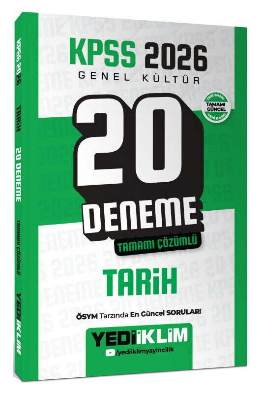 Yediiklim Yayınları 2026 KPSS Genel Kültür Tarih Tamamı Çözümlü 20 Deneme