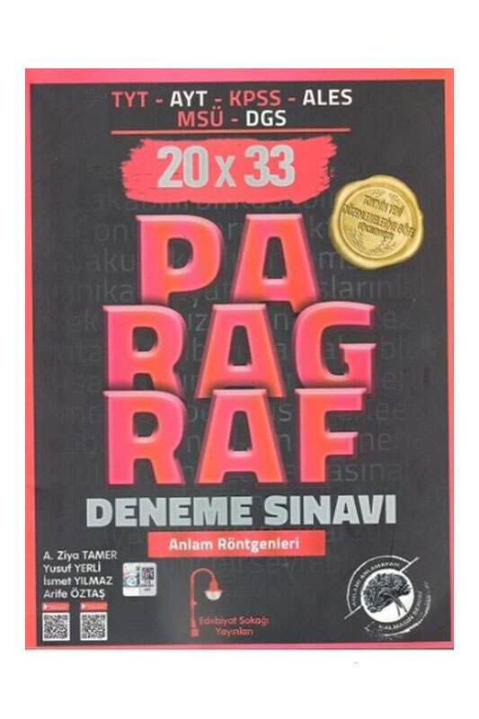 Edebiyat Sokağı TYT-AYT-KPSS-ALES-MSÜ-DGS Paragraf 20x33 Deneme Sınavı
