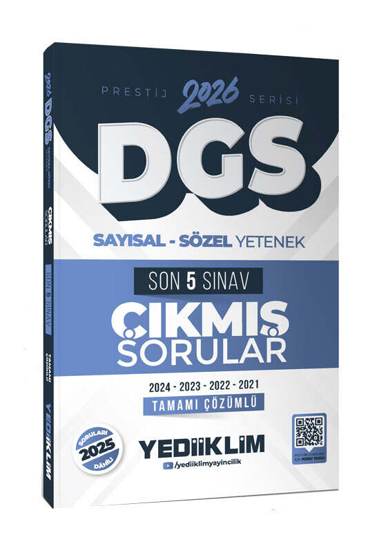 Yediiklim Yayınları 2025 DGS Sayısal-Sözel Yetenek Tamamı Çözümlü Son 5 Sınav Çıkmış Sorular
