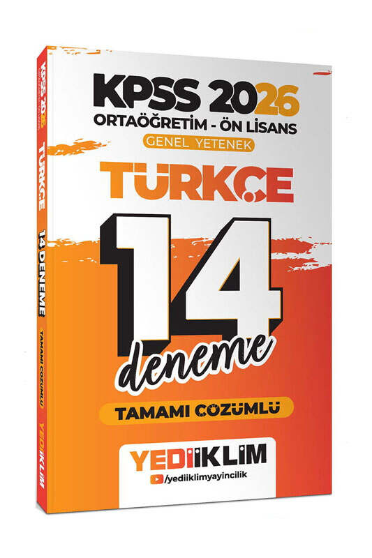 Yediiklim Yayınları 2026 KPSS Ortaöğretim Ön Lisans Genel Yetenek Türkçe Tamamı Çözümlü 14 Deneme