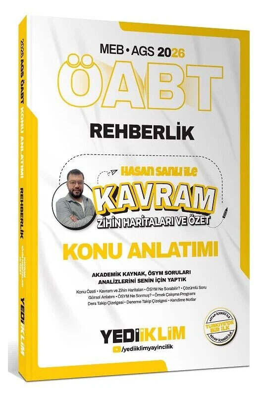 Yediiklim Yayınları 2026 ÖABT MEB-AGS Rehberlik Kavram Zihin Haritaları ve Özet Konu Anlatımı - Hasan Sanlı Yediiklim Yayınları