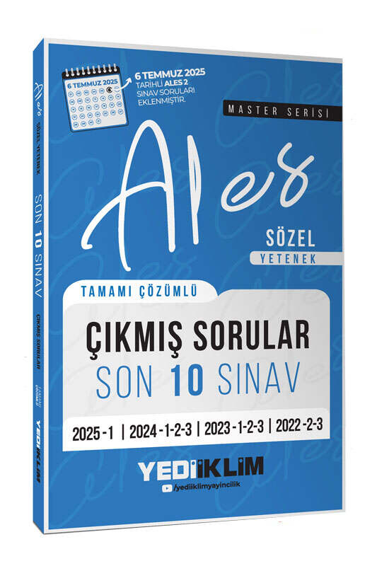 Yediiklim Yayınları ALES Master Serisi Sözel Yetenek Tamamı Çözümlü Son 10 Sınav Çıkmış Sorular 6 Temmuz 2025 Ales-2 Ekli)